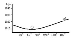 下图是沿30°N的气压分布状况图,读图回答10-11题。