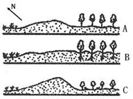 植树造林是治理风沙的有效措施。右图表示某沙区生物治沙示意图,回答第14-15题。