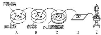 ①把根尖放入15%的盐酸和95%的酒精的混合液(比例1:1)中。