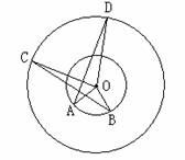 例. 已知:如图,点A、B和点C、D分别在同心圆上.且∠AOB=∠COD,∠C与∠D相等吗?为什么?