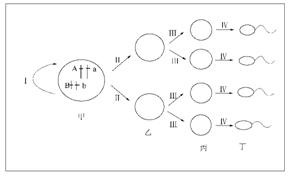 (4)请在下方框内画出产生一个基因型为Ab的丙细胞的Ⅲ过程后期图,并在染色体上标注相应的基因。