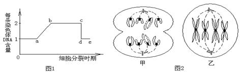 28.(18分)下图中的图1表示细胞分裂的不同时期与每条染色体DNA含量的变化关系;图2表示处于细胞分裂不同时期的细胞图像,据图回答问题: