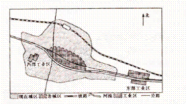 42.度某城市两个工业区的分布示意图,东部工业区包括冶炼厂、钢铁厂、石化厂等,西部工业区包括焦化厂等,该地盛行南风。回答下列问题。(10分)