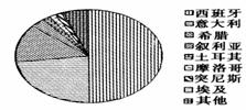 下图是2008年世界橄榄油主产国产量比例图,据此回答13-14小题。