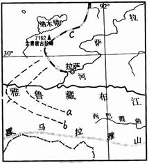 (2)图中,a、b表示雅鲁藏布江谷地的等值线分布示意图,如果a>b,则图中的等值线可能为 。(3分)