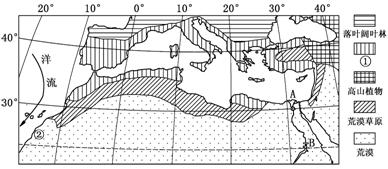 (1)图中植被①表示______________________,这类植被分布地区出产优质葡萄,主要自然原因是__________________________________________。(4分)