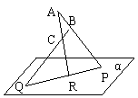 171. 如图:已知△ABC在平面α外,AB∩α=P,AC∩α=R,BC∩α=Q。