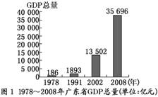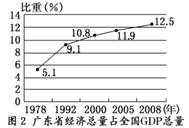 答案:(1)材料1反映了广东省自改革开放以来,GDP总量增长迅速,对全国经济发