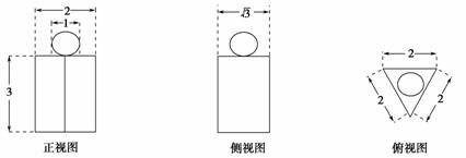 解析:由三视图可知几何体为一个直三棱柱,底面三角形中边长为2的边上的高为a,∴V=3×=3⇒a=.