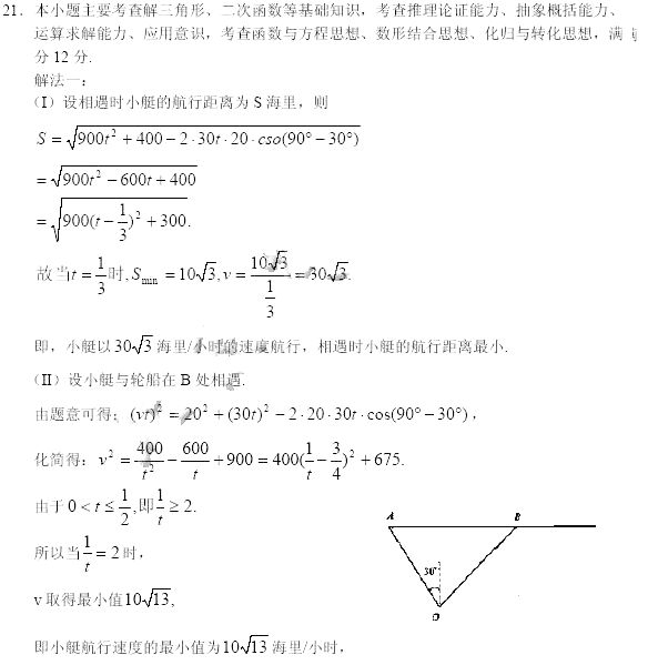 (Ⅱ)为保证小艇在30分钟内(含30分钟)能与轮船相遇,试确定小艇航行速度的最小值;