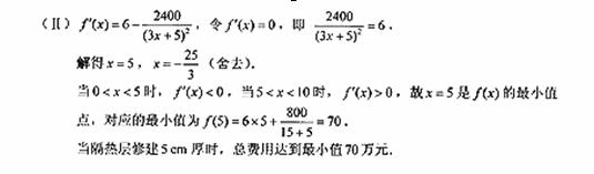 (Ⅱ)隔热层修建多厚时,总费用f(x)达到最小,并求最小值。