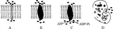 12.下列是物质进入细胞的四种方式图解,水稻细胞吸收K+的方式是 ( )
