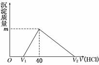 16.将一定量的钠铝合金置于水中,合金全部溶解,得到20 mL pH=14的溶液,然后用1 mol/L的盐酸滴定,沉淀质量与消耗盐酸的体积关系如图所示,则下列选项正确的是 ( )
