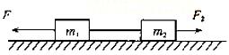 如图所示,两个用轻线相连的位于光滑水平面上的物块,质量分别为m1和m2,拉力F1和F2方向相反,与轻线沿同一水平直线,且F1>F2。试求在两个物块运动过程中轻线的拉力T。