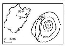 2004年7月1日,“蒲公英”号台风在台湾登陆,读图分析回答问题。