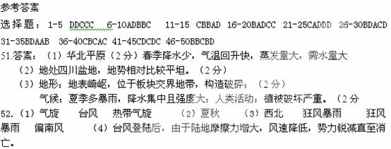 (1)图示区域中春旱最严重的地区主要分布于我国的 地区(用字母回答),试分析该地区春旱严重的原因。(5分)