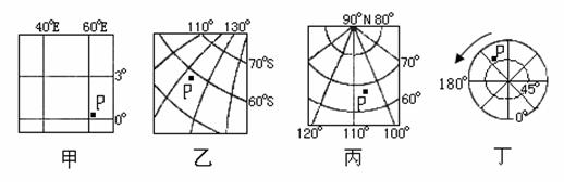 2.下列经纬网四图中,P点位置符合下列条件的是:①在东半球 ②在北半球 ③在中纬度( )