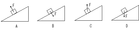 1.物块静止在固定的斜面上,分别按图示的方向对物块施加大小相等的力F,A中F垂直于斜面向上。B中F垂直于斜面向下,C中F竖直向上,D中F竖直向下,施力后物块仍然静止,则物块所受的静摩擦力增大的是: