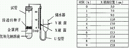 26. (10分)将某种植物种子在水中浸透,然后按左下图装置进行实验,实验开始时x液面