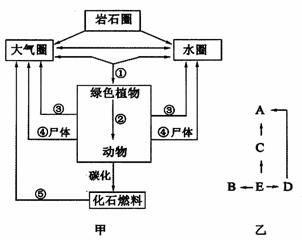 (4)若图甲中的生物种群及相互间的食物关系如乙图所示,设E种群干物质中的能量为1×1010kJ;B种群干物质中蕴藏的能量为2×108kJ,D种群干物质中蕴藏的能量是2.5×108kJ,当A只捕食C时,能量传递效率按20%计算,则A的能量值是 。