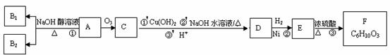 30. (15分)某研究人员发现一个破裂的小瓶中渗漏出一未知环状有机物A,有催泪作用。经分析A的相对分子质量为161,该化合物中除含有C、H元素外还含有溴元素,且分子中只含有一个甲基。化合物A~F的转化关系如下图所示,其中1molC与新制的Cu(OH) 2反应只生成1molCu2O,B1和B2都是较稳定的化合物且互为同分异构体,F是六元环酯。