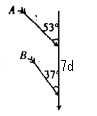 如图所示,墙壁上落有两只飞镖,它们是从同一位置水平射出的,飞镖A与竖直墙壁成53°角,飞镖B与竖直墙壁成37°角,两者相距为7d.假设飞镖的运动是平抛运动,求射出点离墙的水平距离.(