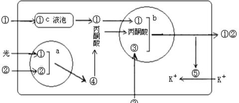 39.(12分)下图一表示某绿色植物细胞内部分代谢活动的相互关系,其中a、b、c代表不同的细胞器,①-⑤代表不同的物质。请据图回答问题: