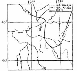 (1)试描述图中东部-20℃等温线的分布特点,并分析其原因。(3分)