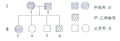 ⑶Ⅱ-3是纯合体的几率是 ,她与一正常男性婚配,所生子女中只患甲病的几率是 。