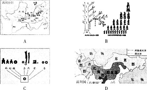 ①西周实行分封制 ②西汉设置刺史 ③唐朝实行三省制 ④宋朝设立参知政事