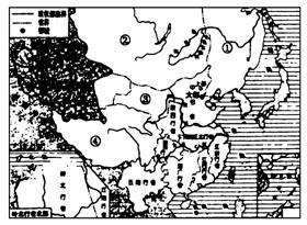 右图为《元朝疆域图》,其中宣政院管辖的地区是