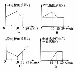 2.将质量相等的铜片和铂片插入硫酸铜溶液中,铜片与电源正极相连,铂片与电源负极相连,以电流强度1 A通电10 min,然后反接电源,以电流强度2 A继续通电10 min。下列表示铜电极、铂电极、电解池中产生气体的质量和电解时间的关系图正确的是 ( )