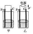 17.甲、乙两池电极材料都是铁棒与碳棒(如图)。请回答下列问题: