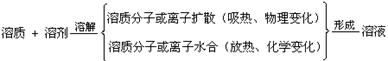 3.溶解过程:溶质分散到溶剂里形成溶液的过程叫溶解。物质溶解时,同时发生两个过程: