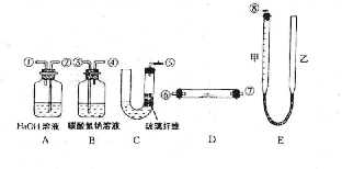 上图中量气装置E是由甲、乙两根玻璃管组成,它们用橡皮管连通,并装入适量水。甲管有刻度(0-50毫升),供量气用;乙管可上下移动,以调节液面高低。
