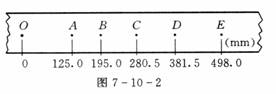 8.在本实验中,所用电源的频率为50Hz,某同学选择了一条理想的纸带,用刻度尺测量时各记数点位置对应刻度尺上的读数如图7-10-2所示(图中O点是打点计时器的第 一个点,A、B、C、D、正分别是每打两个点的时间作为计时单位取的记数点),试根据纸带求: