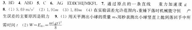 3.在利用自由落体运动验证机械能守恒定律的实验中,除铁架台、夹子、学生电源、纸带和重物外,还需要 ( )