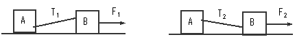5.如图所示A、B两木块放在水平面上,它们用细线相连,两次连接情况中细线倾斜方向不同但倾角一样. 两木块与水平面间的摩擦系数相同,先后用水平力F1和F2拉着A、B一起匀速运动,则