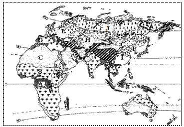 22、读世界部分地区自然带分布示意图,回答下列问题: