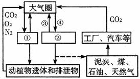C.①绿色植物 ②动物 ③CO2 ④O2 D.①绿色植物 ②动物 ③O2 ④CO2