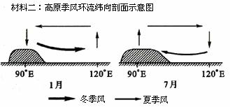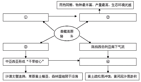 (2)根据材料探究青藏高原的隆起对我国东部地区气候的影响。
