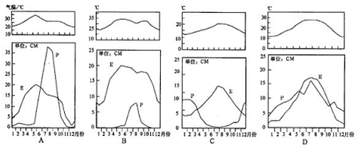 (1)从四地气温与土壤收支来看,各地的气候类型是:A ,B ,C ,D 。