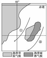 解析:图中马达加斯加岛东侧位于东南信风的迎风坡,降水较多;沿岸有暖流经
