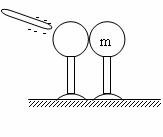 如图,将带电棒移近两个不带电的导体球,两个导体球开始时互相接触且对地绝缘,下述几种方法中能使两球都带电的是: ( )