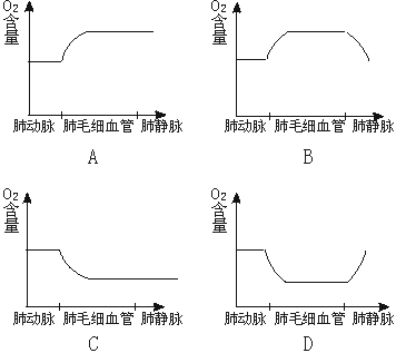 4.(2002年广东、河南、广西高考题)血液通过肺部血管时,O2含量发生变化,下列正确地表示该变化的曲线图是