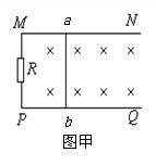 15.(16分)如图甲所示,足够长的平行金属导轨MN、PQ固定在同一水平面上,两导轨间距为L,MP间连有电阻R,导轨上停放一质量为m、电阻为r的金属杆ab,导轨电阻忽略不计,整个装置处于竖直向下的匀强磁场中,从0时刻起对ab施一水平向右的恒定拉力作用,t2时刻ab达最大速度v0,以后撤去拉力,ab杆向右运动的v-t图象如图乙所示,图中斜向虚线为过原点速度图线的切线。已知ab杆与导轨间动摩擦因数为μ,重力加速度为g。求:(1)匀强磁场的磁感应强度B;(2)t2时刻回路的电功率P;(3)ab运动过程回路中产生的焦耳热Q。