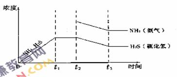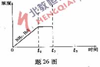 ②题26图是上述反应过程中生成物浓度随时间变化的示意图.若t2时增大氨气的浓度且在t3时反应再次达到平衡,诸在图上画出t2时刻后氨气、硫化氢的浓度随时间的变化曲线.