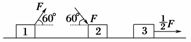 5.如图18所示,三个完全相同物块1、2、3放在水平桌面上,它们与桌面间的动摩擦因数都相同.现用大小相同的外力F沿图示方向分别作用在1和2上,用F的外力沿水平方向作用在3上,使三者都做加速运动.令a1、a2、a3分别表示物块1、2、3的加速度,则( )