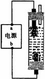 在玻璃圆筒中盛有两种无色的互不相溶的中性液体。上层液体中插入两根石墨电极,圆筒内还放有一根下端弯成环状的玻璃搅棒,可以上下搅动液体,装置如右图。接通电源,阳极周围的液体呈现棕色,且颜色由浅变深,阴极上有气泡生成。停止通电,取出电极,用搅棒上下剧烈搅动。静置后液体又分成两层,下层液体呈紫红色,上层液体几乎无色。根据上述实验回答: