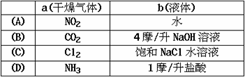 在下图装置中,烧瓶中充满干燥气体a,将滴管中的液体b挤入烧瓶内,轻轻振荡烧瓶,然后打开弹簧夹f,烧杯中的液体b呈喷泉状喷出,最终几乎充满烧瓶。a和b分别是………………………………………………………………………( )